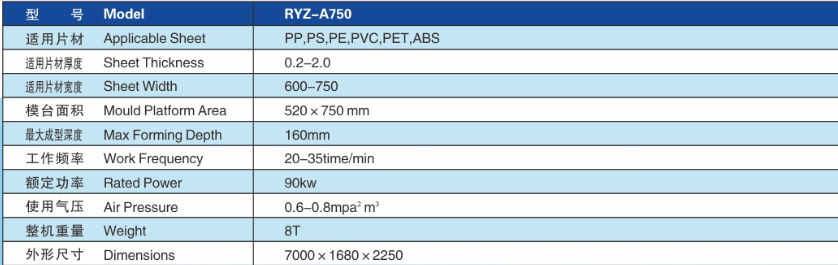 RYZ-750系列全自動(dòng)液壓制杯機(jī)是我司開發(fā)研制的高速度,高效率的全自動(dòng)塑料容器的成型機(jī)。該機(jī)適用于生產(chǎn)PS,PP,PVC,PET,ABS等塑料片材